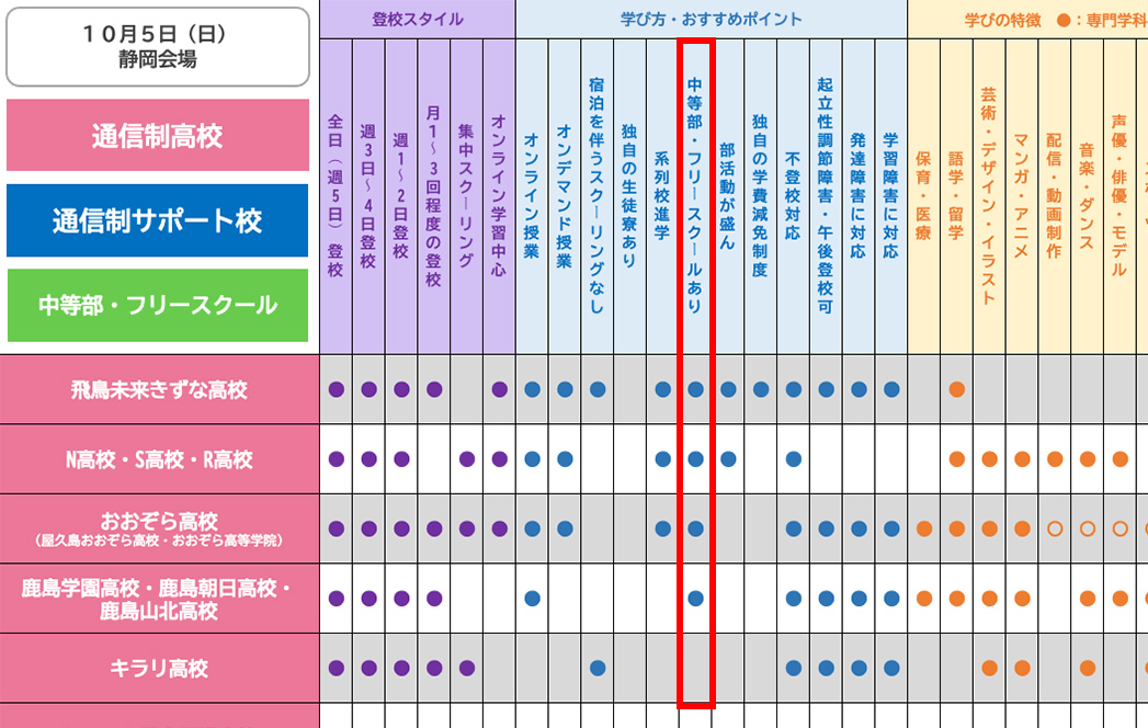 中等部・フリースクールの説明が聞ける学校が多数参加します