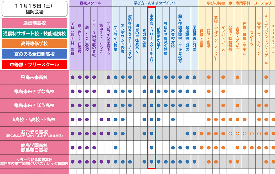 中等部・フリースクールの説明が聞ける学校が多数参加します