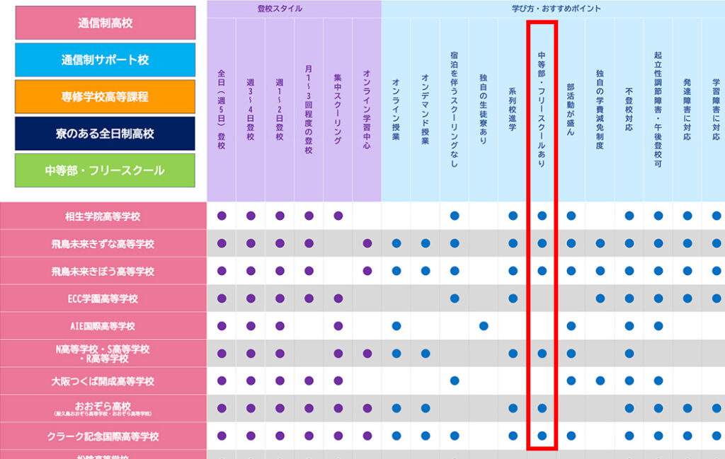 中等部・フリースクールの説明が聞ける学校が多数参加します