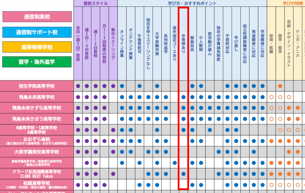 中等部・フリースクールの説明が聞ける学校が多数参加します